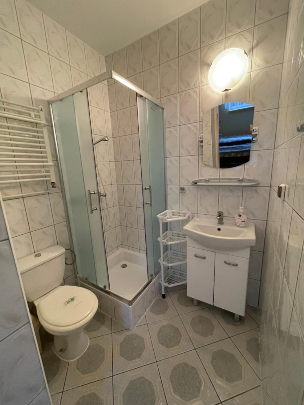 Pokój Trzyosobowy z prywatną łazienką. The triple room provides a tea and coffee maker, a wardrobe, as well as a private bathroom featuring a walk-in shower and a bath or a shower. This triple room features parquet floors, heating, a TV and garden views. The unit offers 1 bed. Pokój Trzyosobowy - 2 osobowy. Powierzchnia pokoju ok.: 14 mkw.